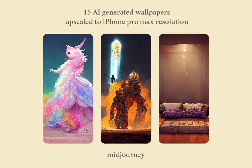 15 wallpapers done by midjourney AI. 1284x2778px resolution.